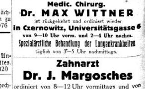 - Max Wittner: Reiseeindrücke in Palästina und Ägypten. Cernăuți 1927