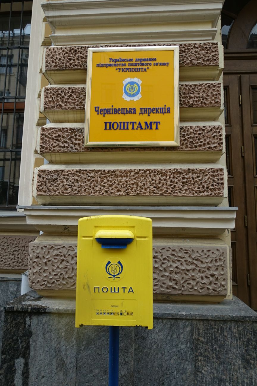 Das Postamt liegt in der Straße Poštova, einer der ältesten Straßen der Stadt. Sie hieß ursprünglich Mehlgasse, die nach dem Bau des Hauptpostamtes in Postgasse umbenannt wurde. In der Zwischenkriegszeit hieß sie Bukarester Straße, anschließend erhielt sie wieder den Namen Postgasse und wurde 1969 nach dem russischen Revolutionär Chudjakov benannt. Im Zuge der sogenannten De-Kommunisierungsgesetze in der Ukraine 2014-2016 erhielt die Straße wieder ihren Namen aus der österreichischen Zeit. Die vul. Poštova gehört zu den wenigen Straßen in Czernowitz, in der Gebäude im Zweiten Weltkrieg zerstört wurden, wie z.B. das Gebäude der Bukowiner Börse, die 1877 eröffnet worden war.