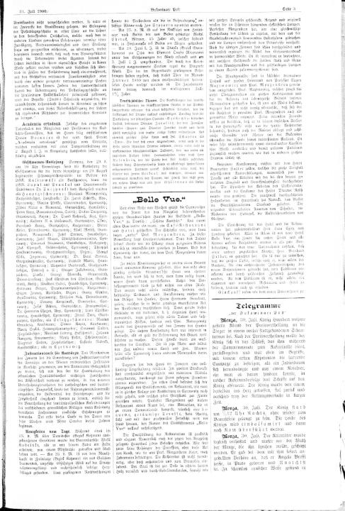 In einem Bericht anlässlich der Eröffnung des Hotels heißt es: „Im zweiten Stockwerke sind comfortabel eingerichtete, mit modernen Möbeln ausgestattete, durchwegs zur Front gelegene Fremdenzimmer angeordnet. Im ersten Stock befindet sich der Glanzpunkt des Etablissements, ein Restaurant, wie man es in gleicher Anlage und Ausstattung in Czernowitz noch nicht gehabt, und welches jeder Großstadt zur Zierde gereichen würde. Professor Morgenstern gab diesem Restaurant etwas Neues bei, eine Attraction, die es zu einem Sommerlocale stempelt, nämlich eine bequeme, geräumige Terrasse, stets schattig, kühl und mit ihrer prachtvollen Fernsicht weit ins Land hinaus, den Namen des Etablissements Belle Vue vollauf rechtfertigt.“ (Bukowinaer Post, 31. Juli 1900, S. 3).