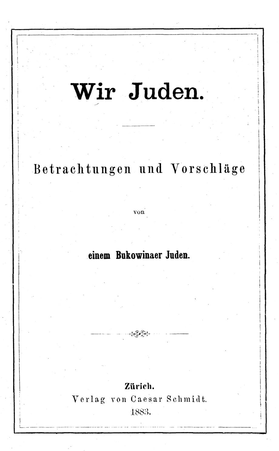 - Leon Rosenzweig: Wir Juden: Betrachtungen und Vorschlage von einem Bukowiner Juden. Zürich 1883